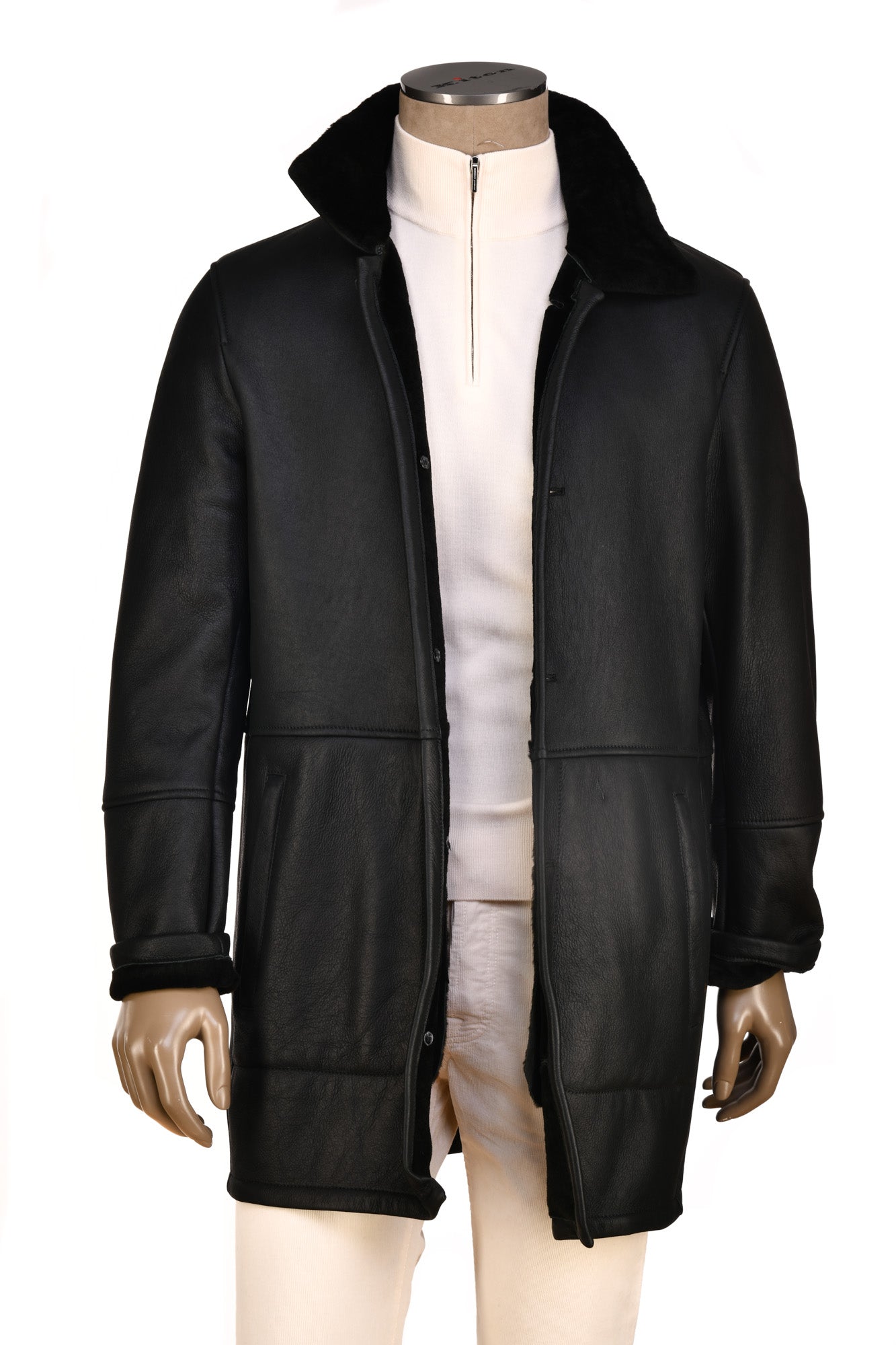 Hettabretz Leather Lightly-Lined Shearling Overcoat