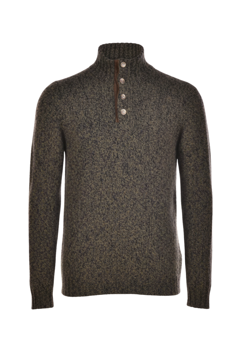 Fedeli Wool-Cashmere Marled Turtleneck Knit Quarter Button Up Sweater