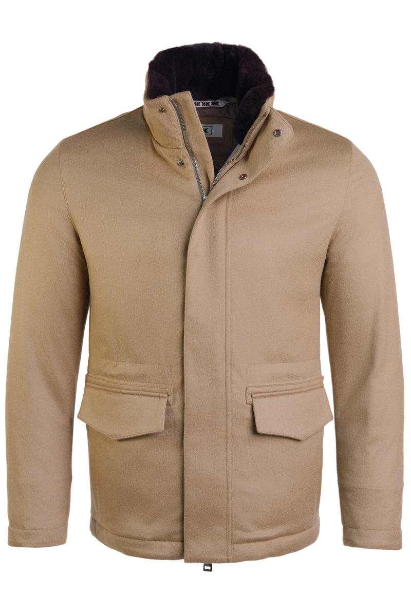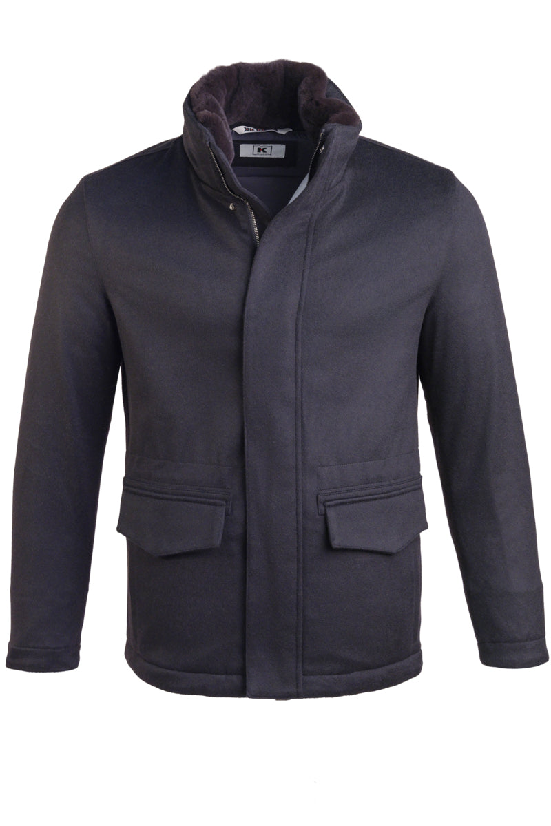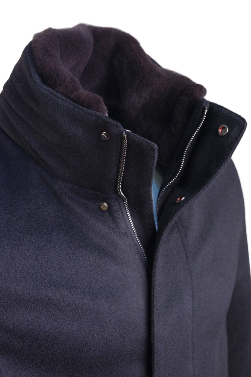 Kired by Kiton MUTP Cashmere Goose Down Overcoat w/ Fur Trim Collar