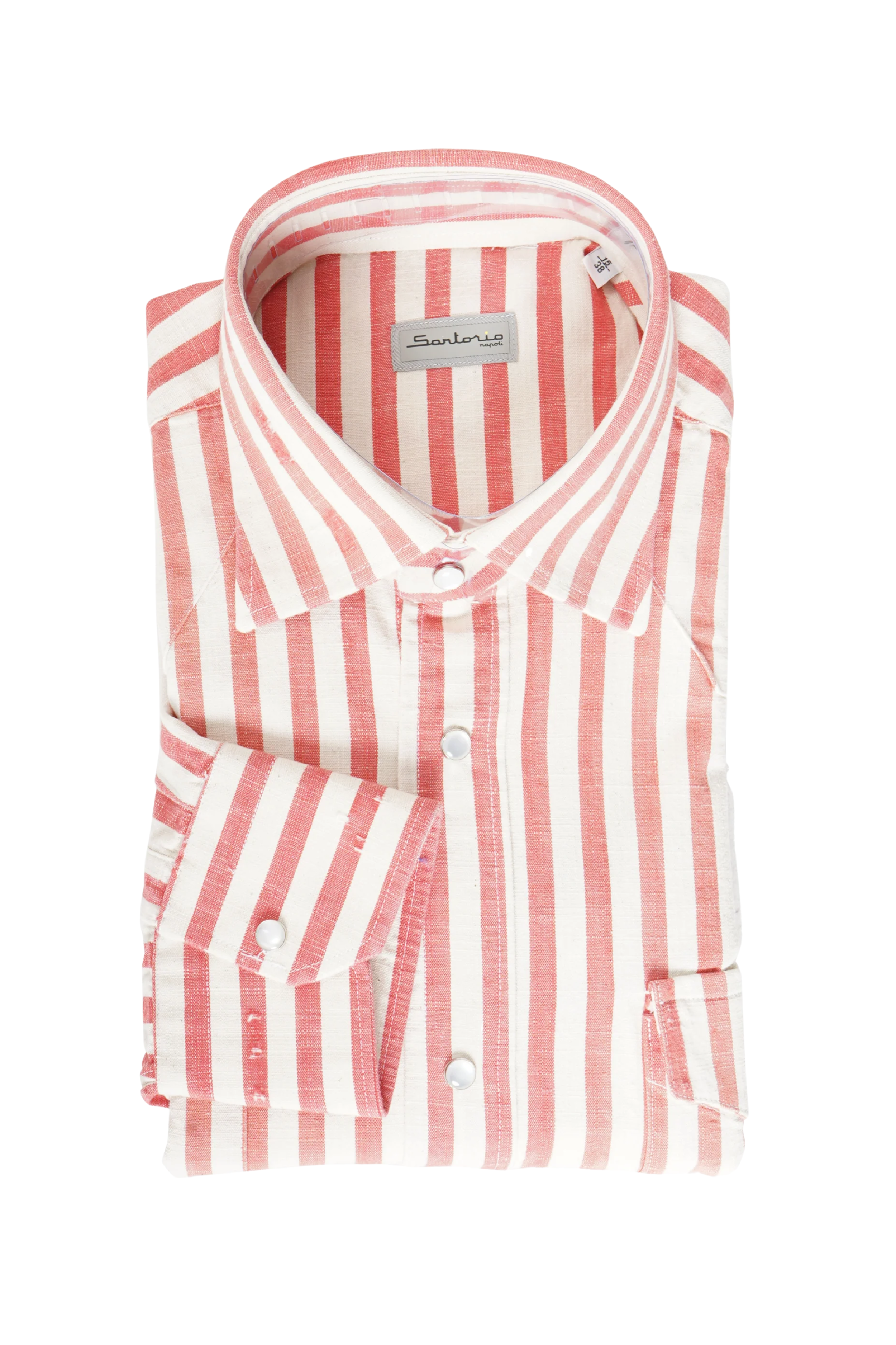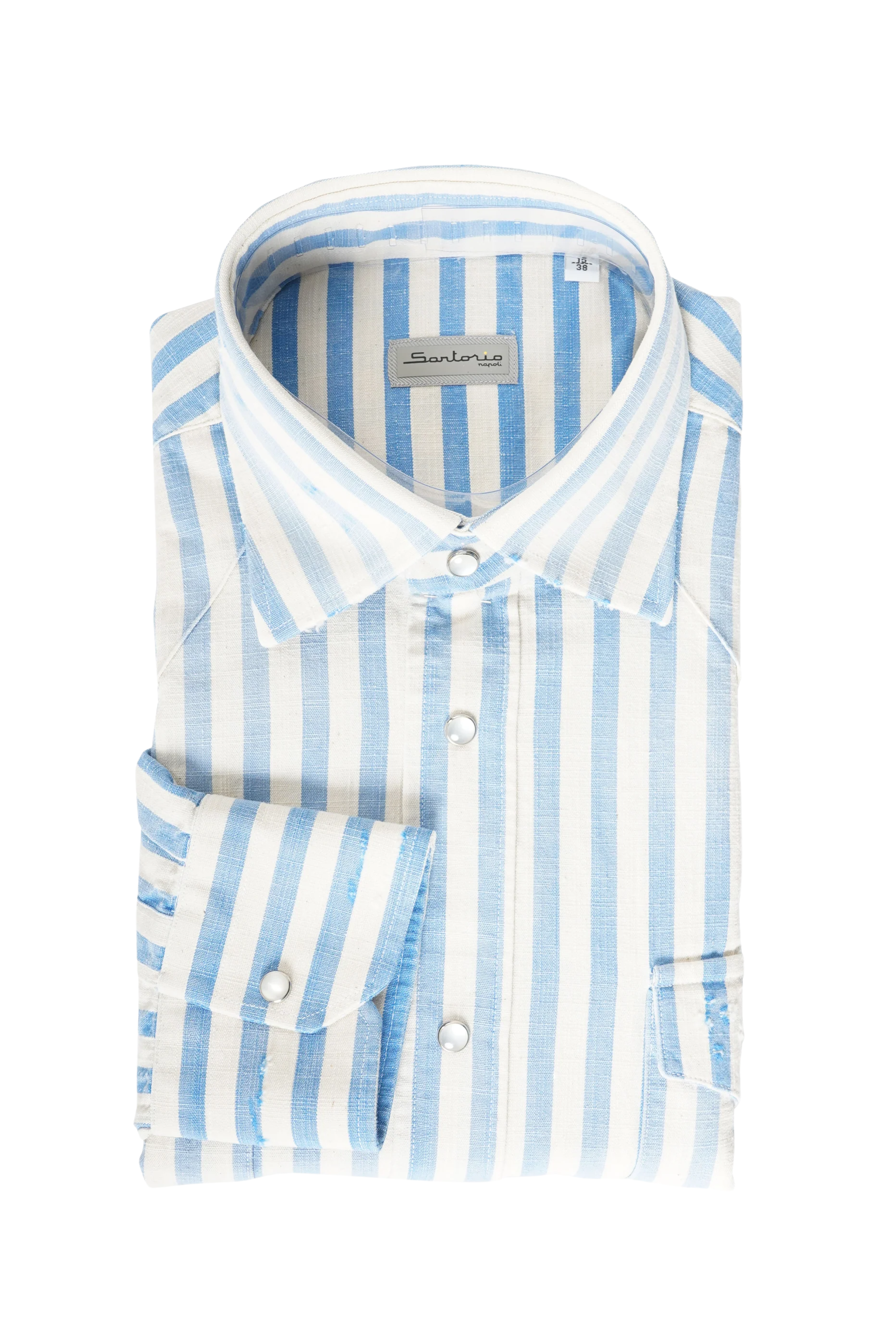 Sartorio Jumbo Pinstripe Denim Snap Button Cotton Overshirt