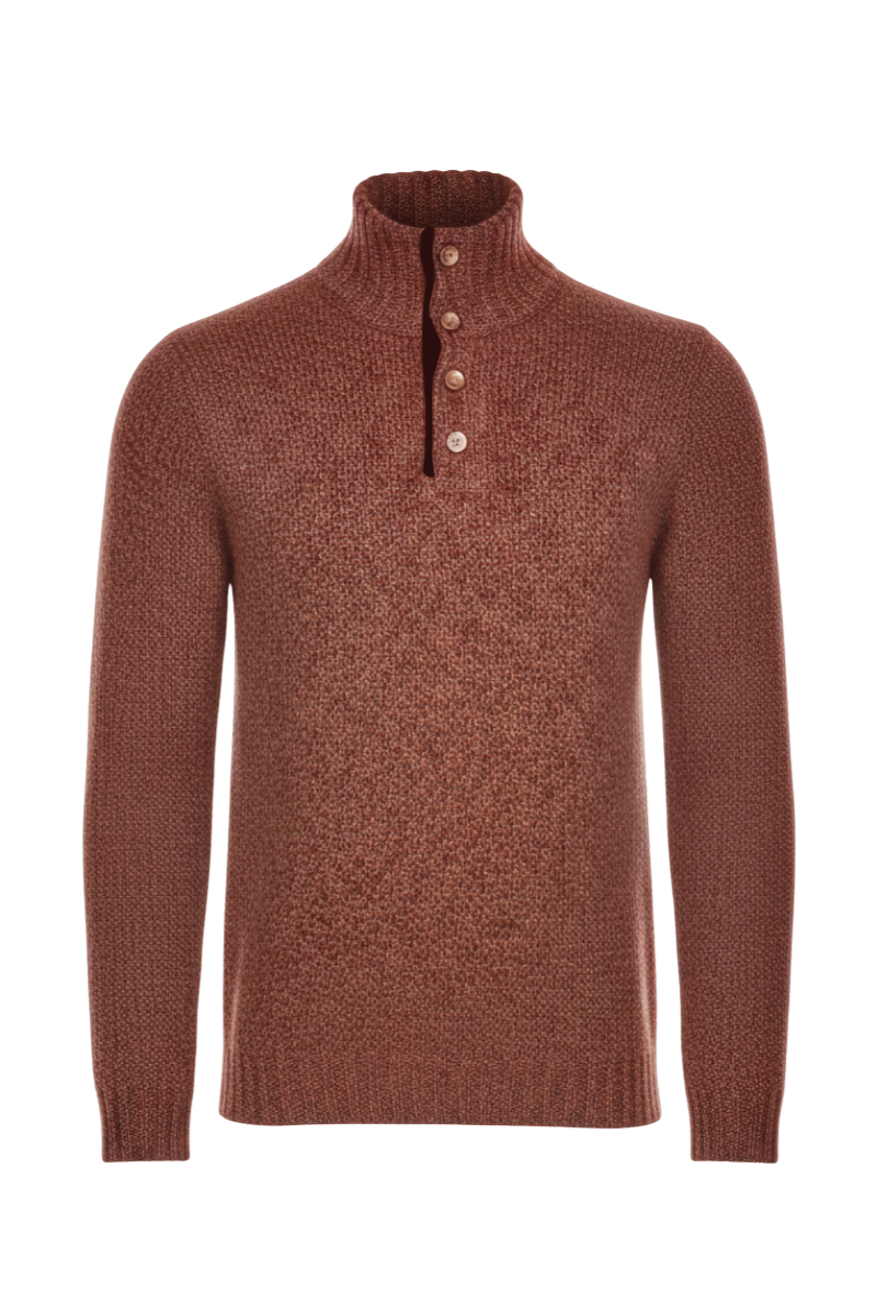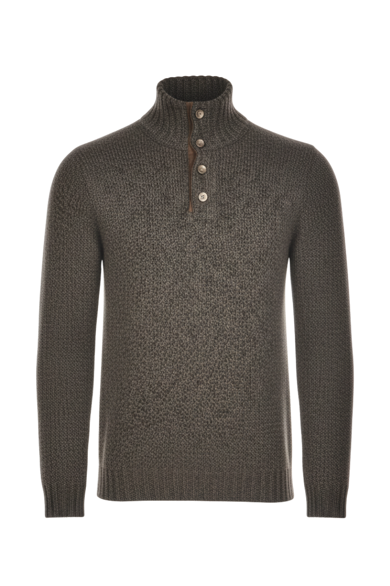 Fedeli Wool-Cashmere Marled Turtleneck Knit Quarter Button Up Sweater